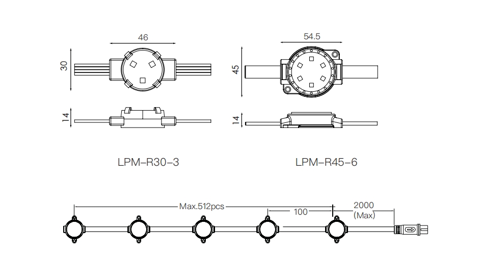 | LPM-R45-6 | φ45mm | 1.5W | 2700K/3000K 4000K/6000K |